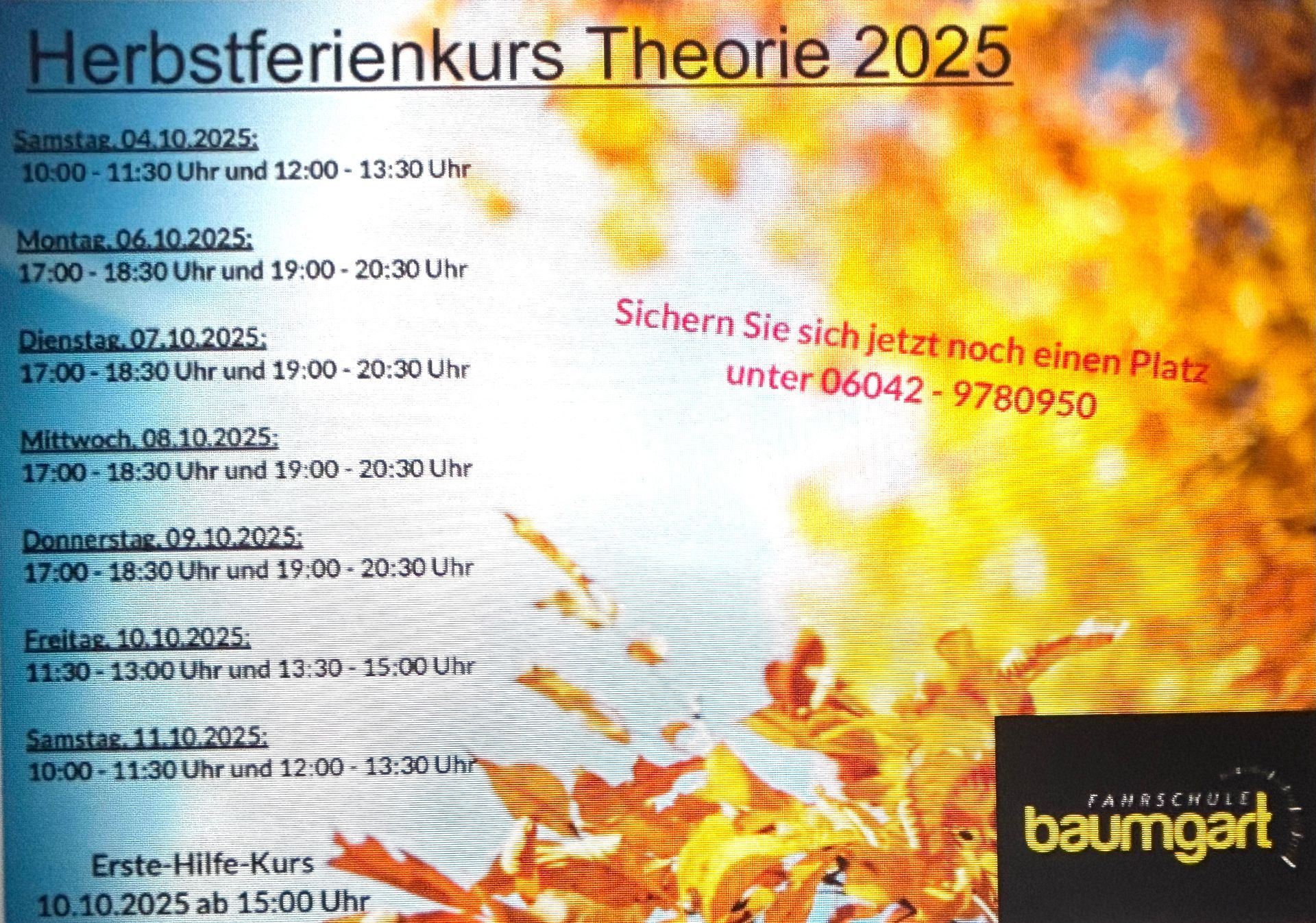 Start: Herbstferien- Ferienkurs Theorie in Büdingen 10 Uhr + 12 Uhr